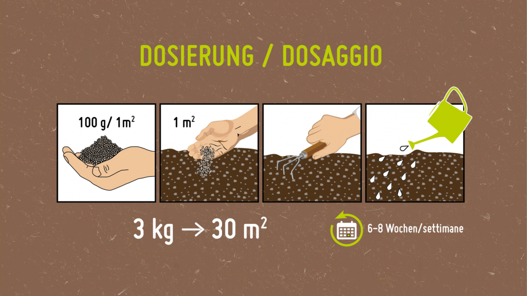 - Bei Blumen, welche etwas weniger hungrig sind, genügt die Wiederholung der Anwendung nach ca. 8 Wochen.